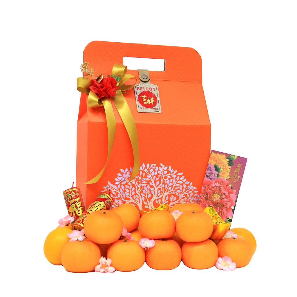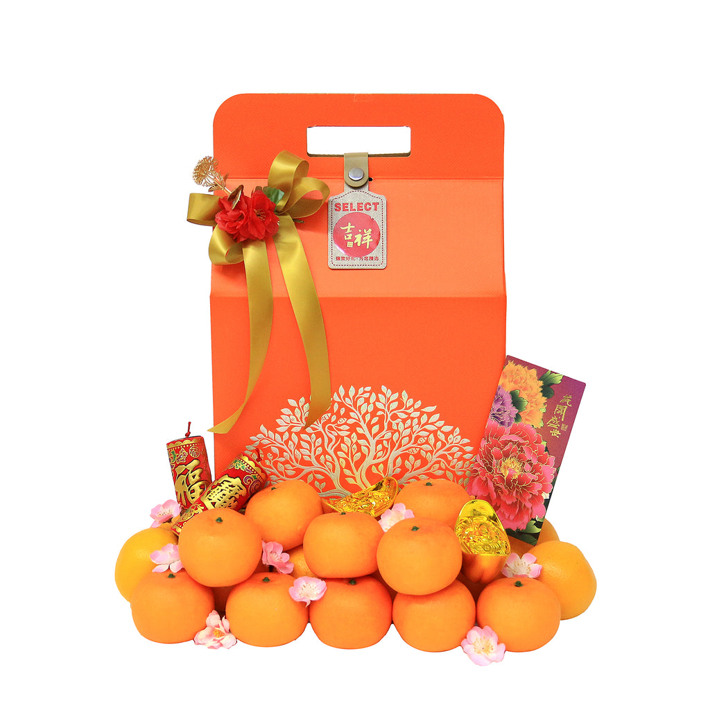 PROMOTION SET - Looking for something simple to bless your loved one? This beautiful red gift box contains eight (18-28) mandarin oranges with CNY decoration. The gift box comes with an easy-carry handle.