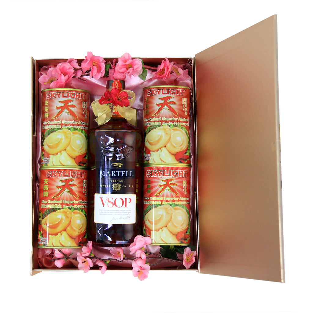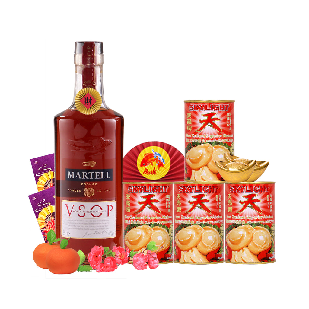 Just Abalones and Martell! A Rosegold magnetic ornate gift box contains an exquisite selection of premium ablones & Martell VSOP 70cl. Celebrate Chinese New Year by sharing this luxurious gift box with your loved ones.