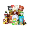 This festive hamper includes a selection of snacks, cookies, and chocolates, thoughtfully arranged in a neat and attractive carrier bag.